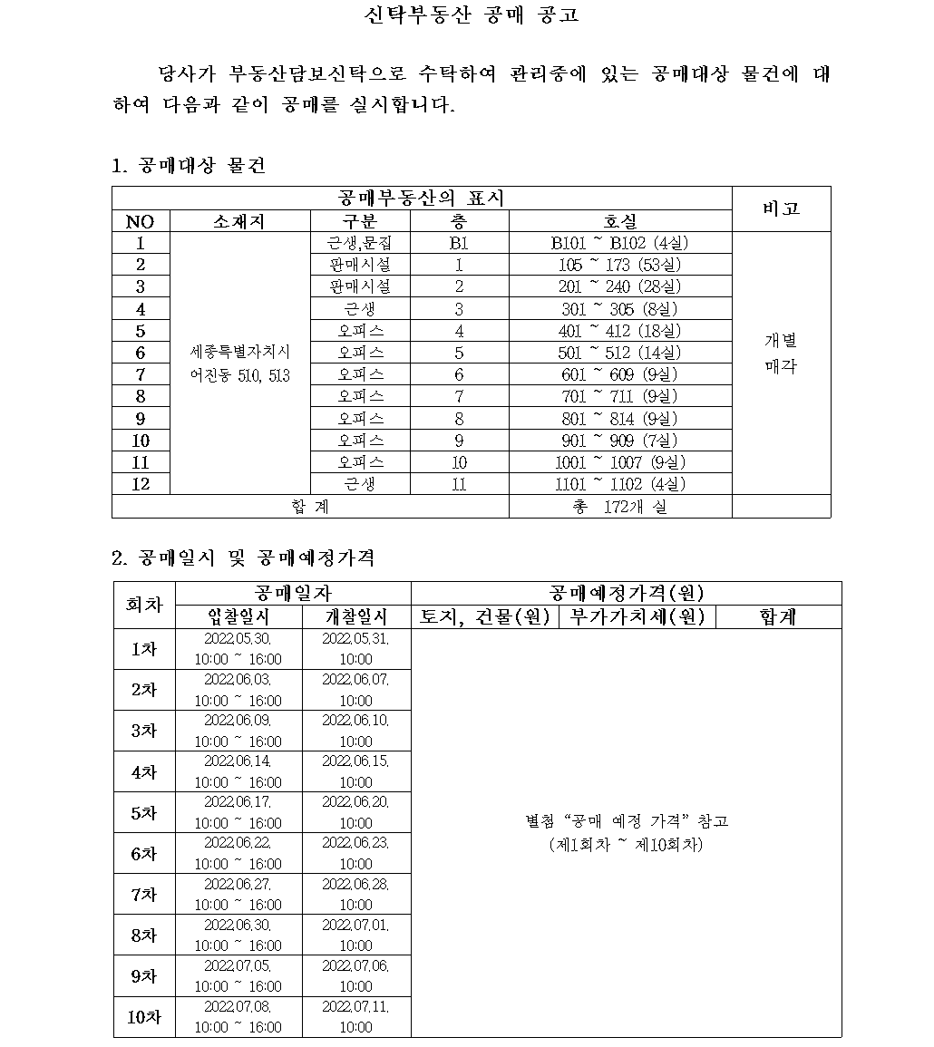 공매중지 세종시 어진동 510, 513번지 엠브릿지 B2-101호 외 171개호실 개별매각