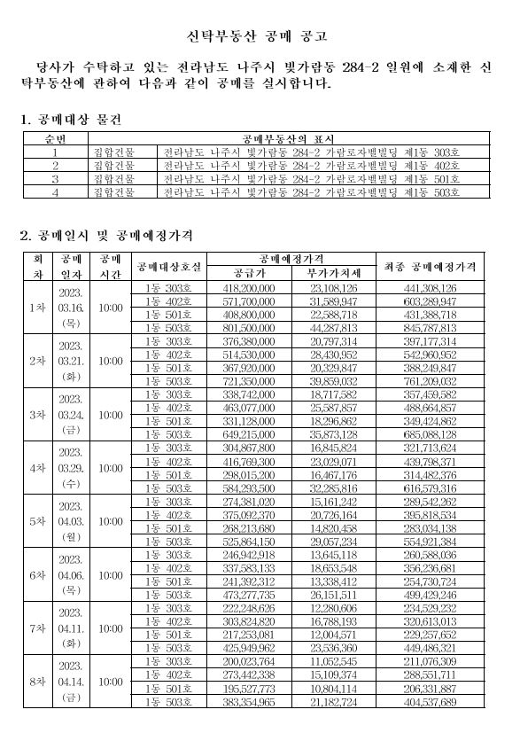 유찰 전남 나주시 빛가람동 284-2 가람로자벨빌딩 1동 303호 외3호실 근생 개별매각