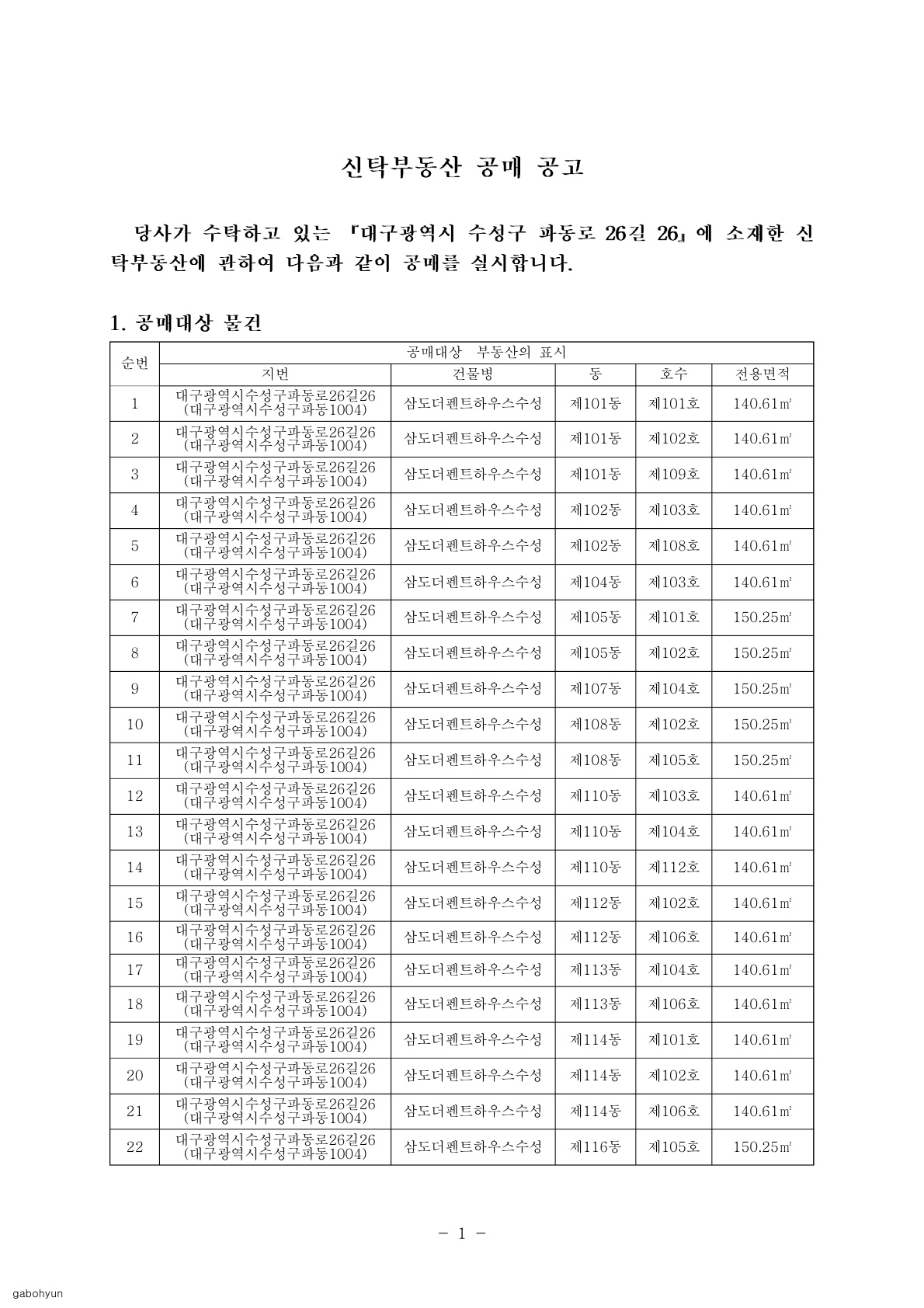 대구광역시 수성구 파동로 26길 26 제101동 제101호 외 30개 호실 연립주택 및 근린생활시설 매각