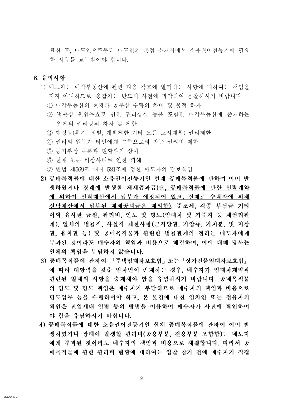 - 공매공고 및 입찰참가자 준수규칙 등을 한국자산관리공사(KAMCO)가 관리ㆍ운영하는 전자자산처분시스템(온비드, www.onbid.co.kr)에서 반드시 확인하여 주시기 바랍니다. ※ 당사는 등기부상 최초 1회에 한하여 소유권 이전등기 업무만을 수행하고 이를 제외한 매매계약과 관련한 매도인으로서의 일체의 의무 및 책임(매매목적물의 모든 법률적·사실적 하자 또는 장애에 대한 매도인으로서의 의무 및 책임, 불법행위책임, 채무불이행책임 및 하자담보책임을 포함하되 이에 한정되지 않음)을 부담하지 않음을 안내드립니다.