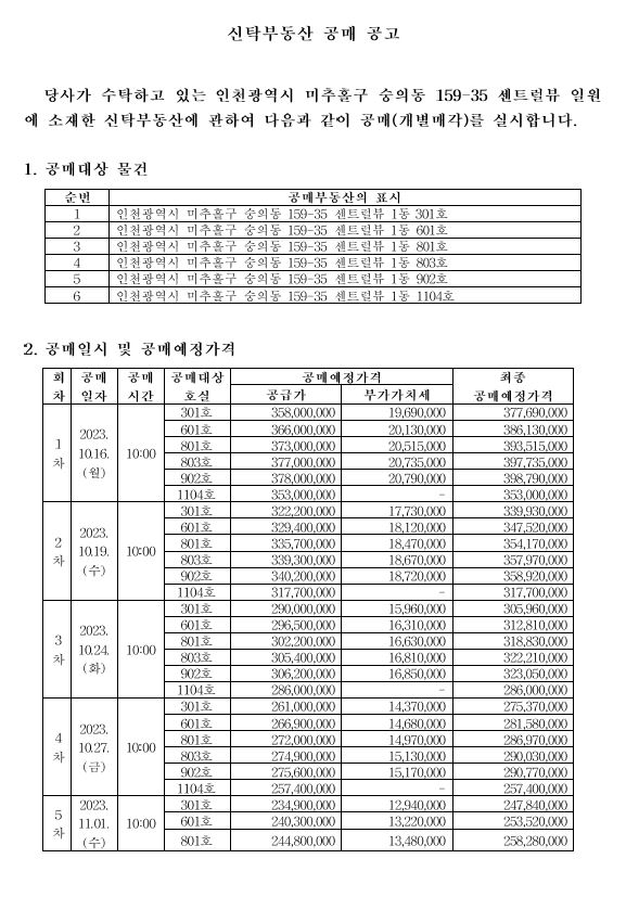 공매중지 인천 미추홀구 숭의동 159-35 센트럴뷰 6호실 개별매각 (2차)