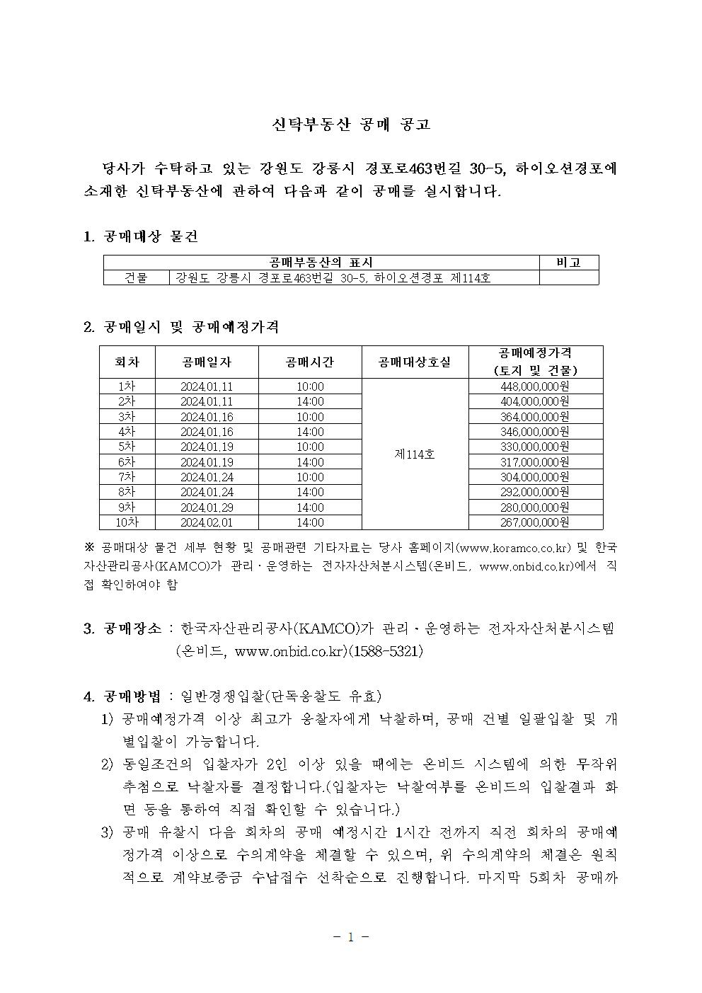진행중 강원도 강릉시 경포로463번길 30-5, 하이오션경포 제114호