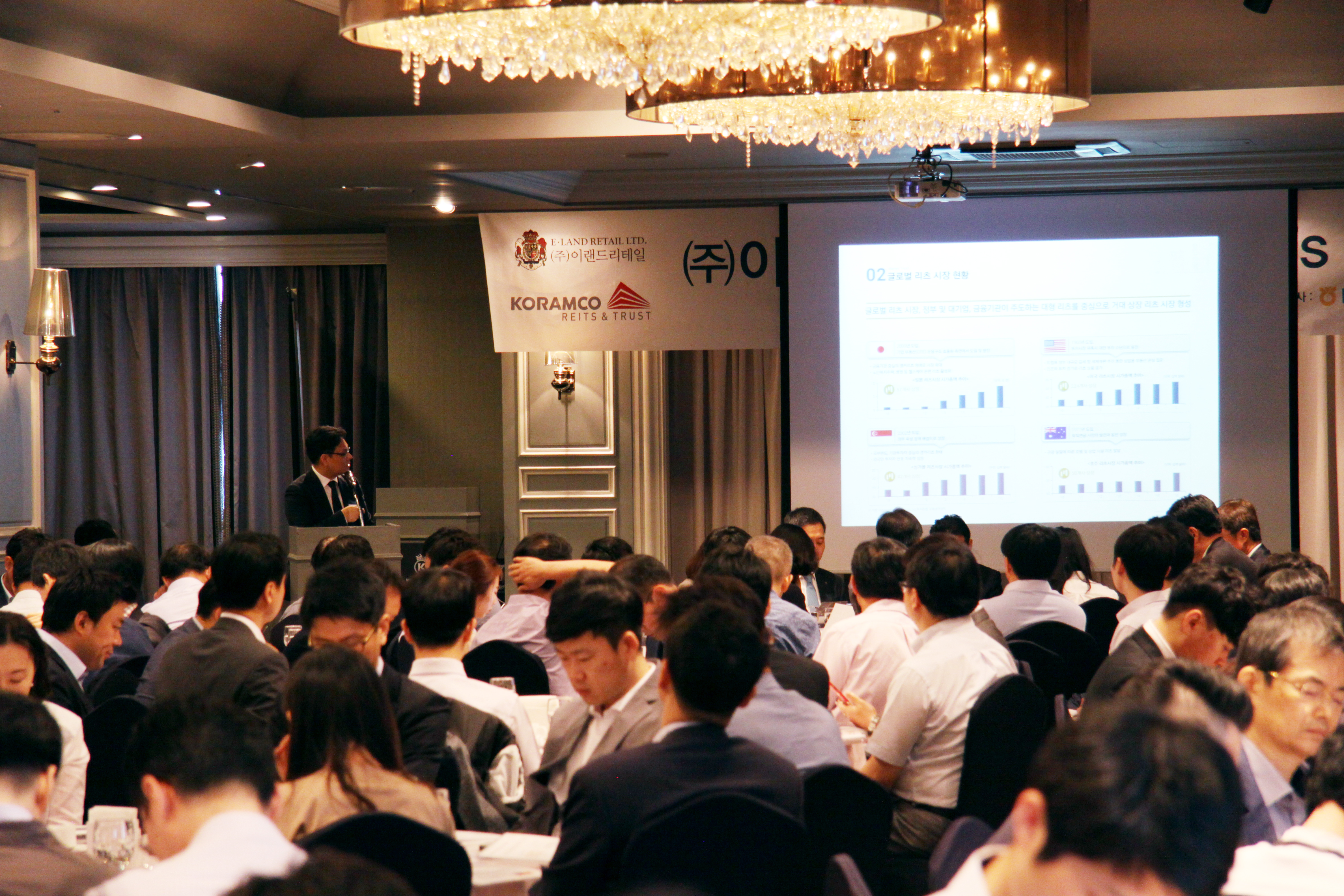 이어 이리츠코크렙의 자산관리회사인 코람코자산신탁은 프리젠테이션을 통해 국내외 리츠 시장 현황 및 전망, 이랜드리테일의 장기 책임임차에 따른 연 7%대의 안정적인 배당수익이 가능한 이리츠코크렙의 특장점을 소개했다.