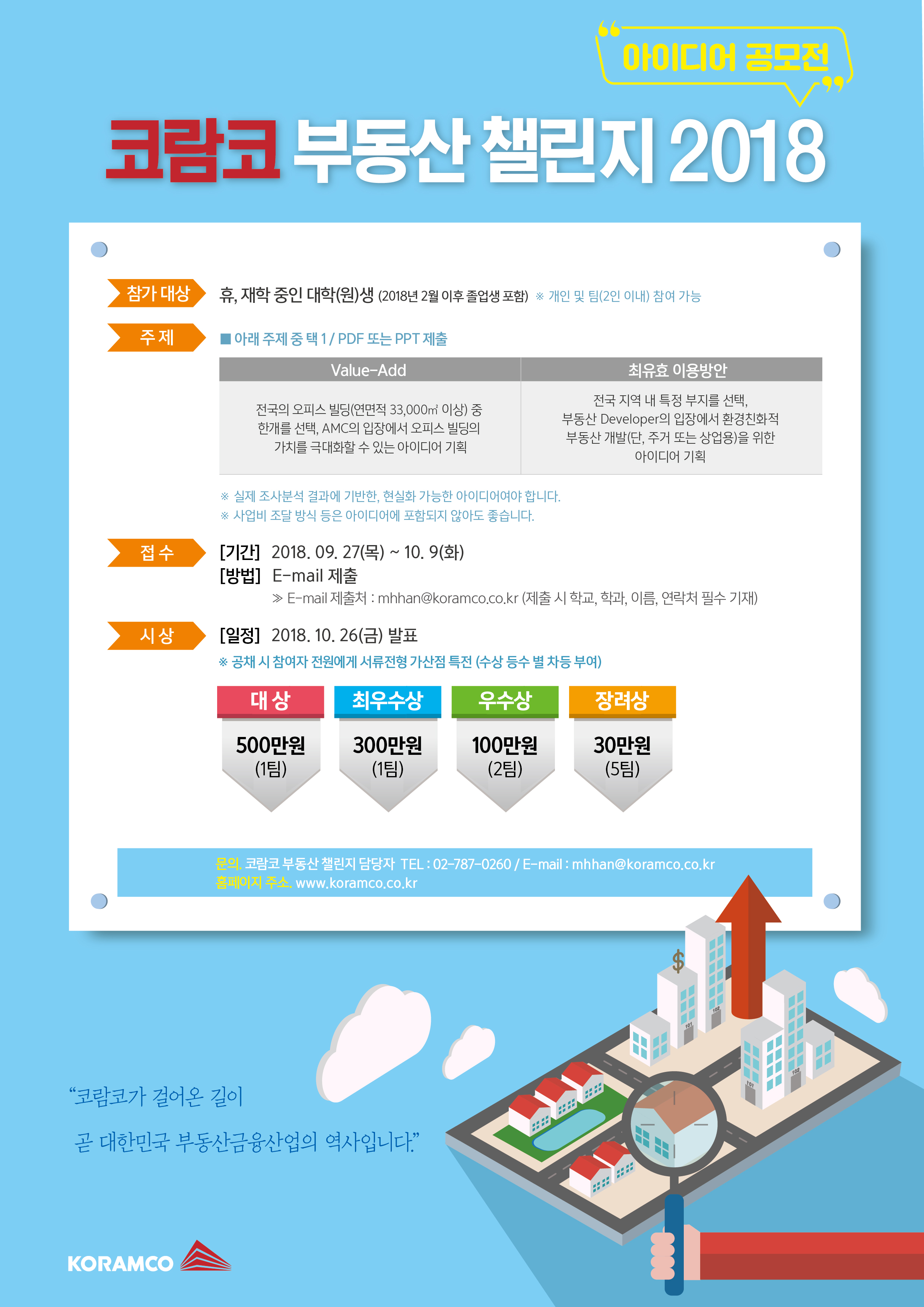 ※ 공모전 참가자 전원에게 코람코 공채 지원 시 서류전형 가산점 특전(수상 등수 별 차등 부여)