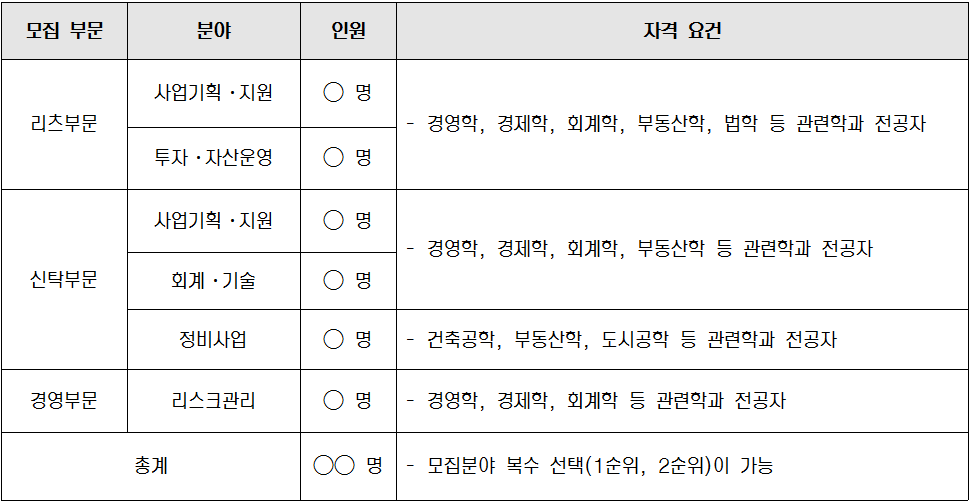 ※부동산 및 금융관련 자격증 소지자 우대(감정평가사,공인중개사, 투자자산운용사, 변호사 등)