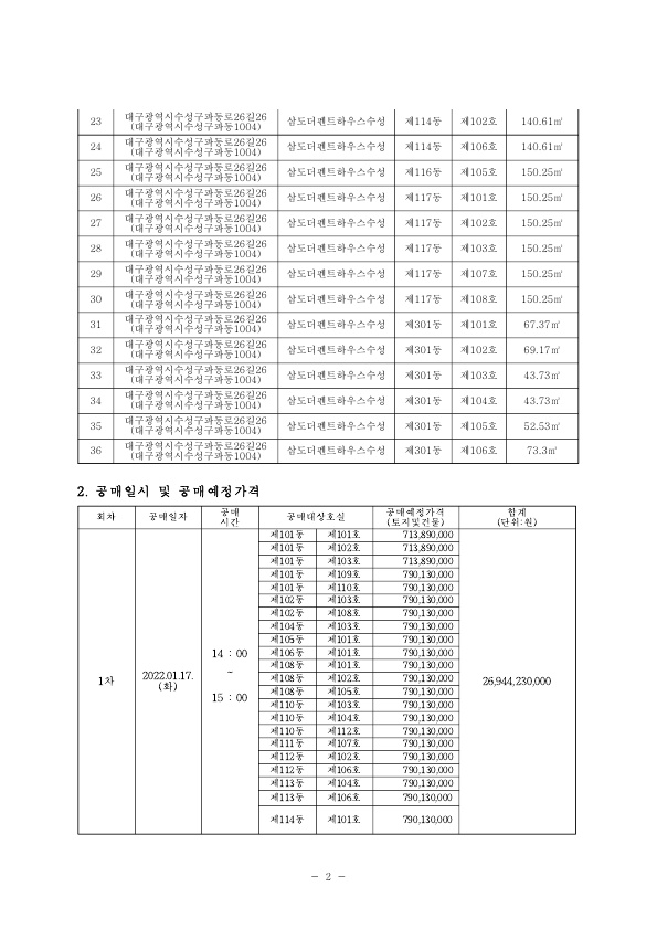 진행중 대구광역시 수성구 파동로 26길 26 제101동 제101호 외 35개 호실 개별공매