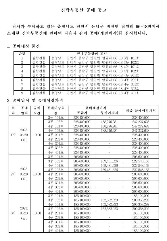 유찰 충남 천안시 동남구 병천면 탑원리 66-18 다세대주택 3동 101호 외8호실 개별매각 (2차)