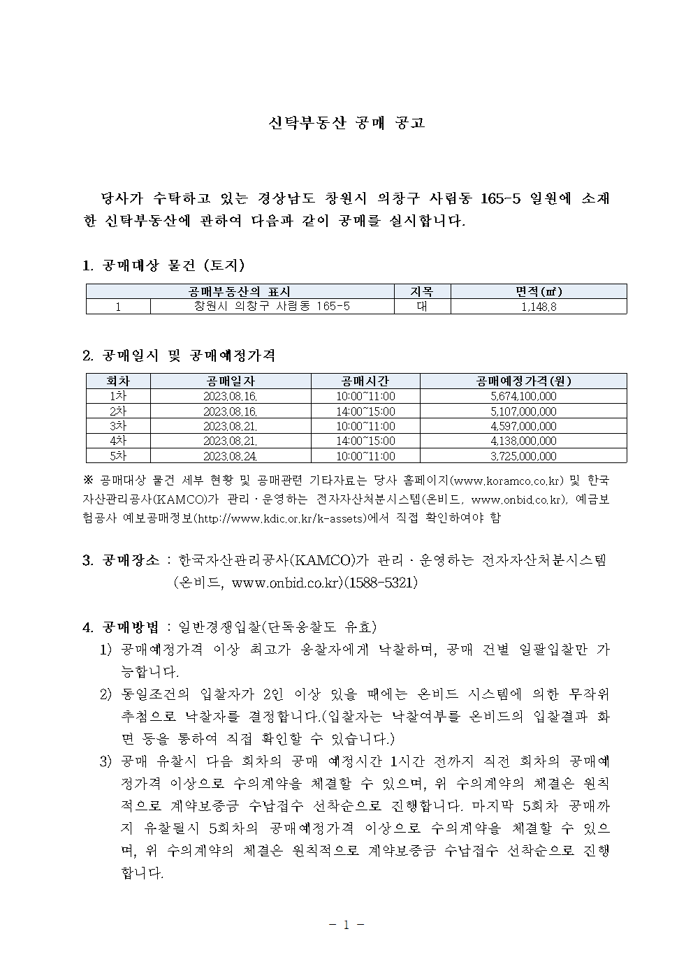 진행중 경상남도 창원시 의창구 사림동 165-3외 3필지 신탁부동산 공매 (개별매각)