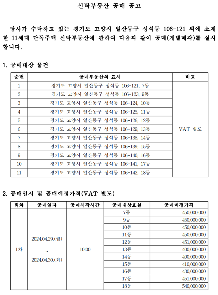 진행중 경기도 고양시 일산동구 성석동 1061-121 외 11세대 공매