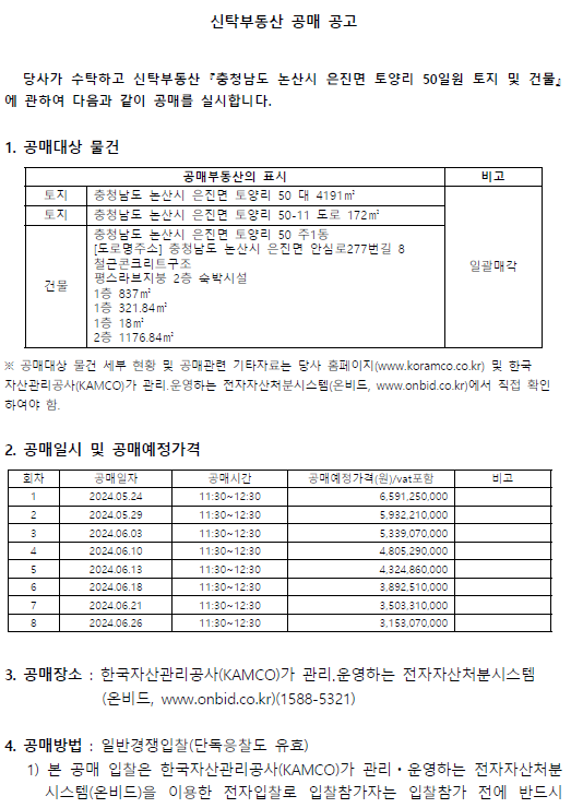 공매중지 충청남도 논산시 은진면 토양리 50외 공매