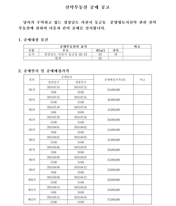 공매중지 경상남도 사천시 동금동 83-13 토지 매각