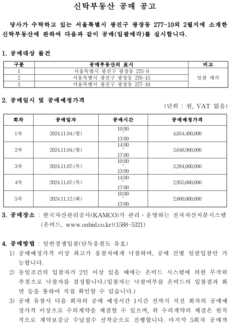 진행중 서울특별시 광진구 광장동 277-10 외2필지 토지 공매