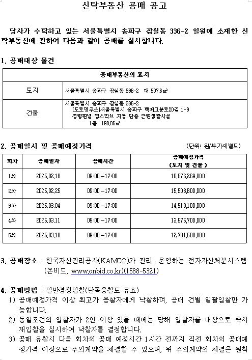 진행중 서울특별시 송파구 잠실동 336-2 토지 및 건물 공매