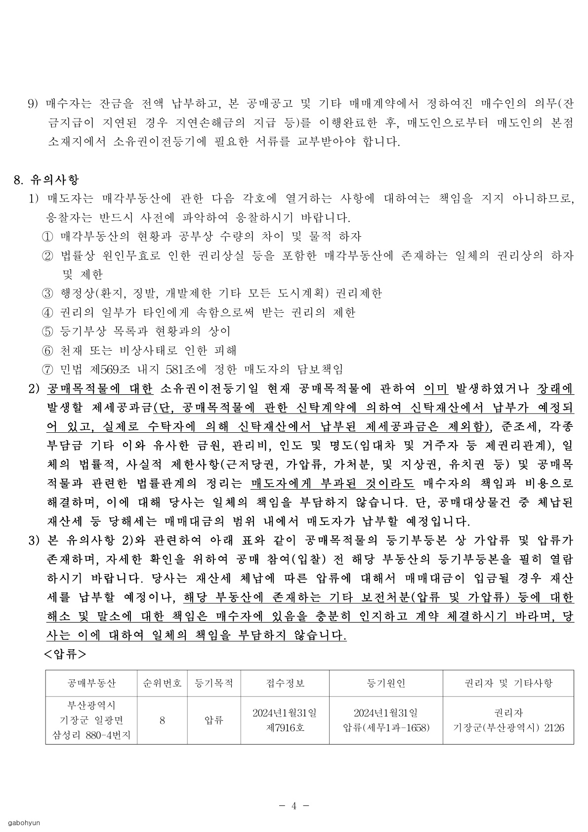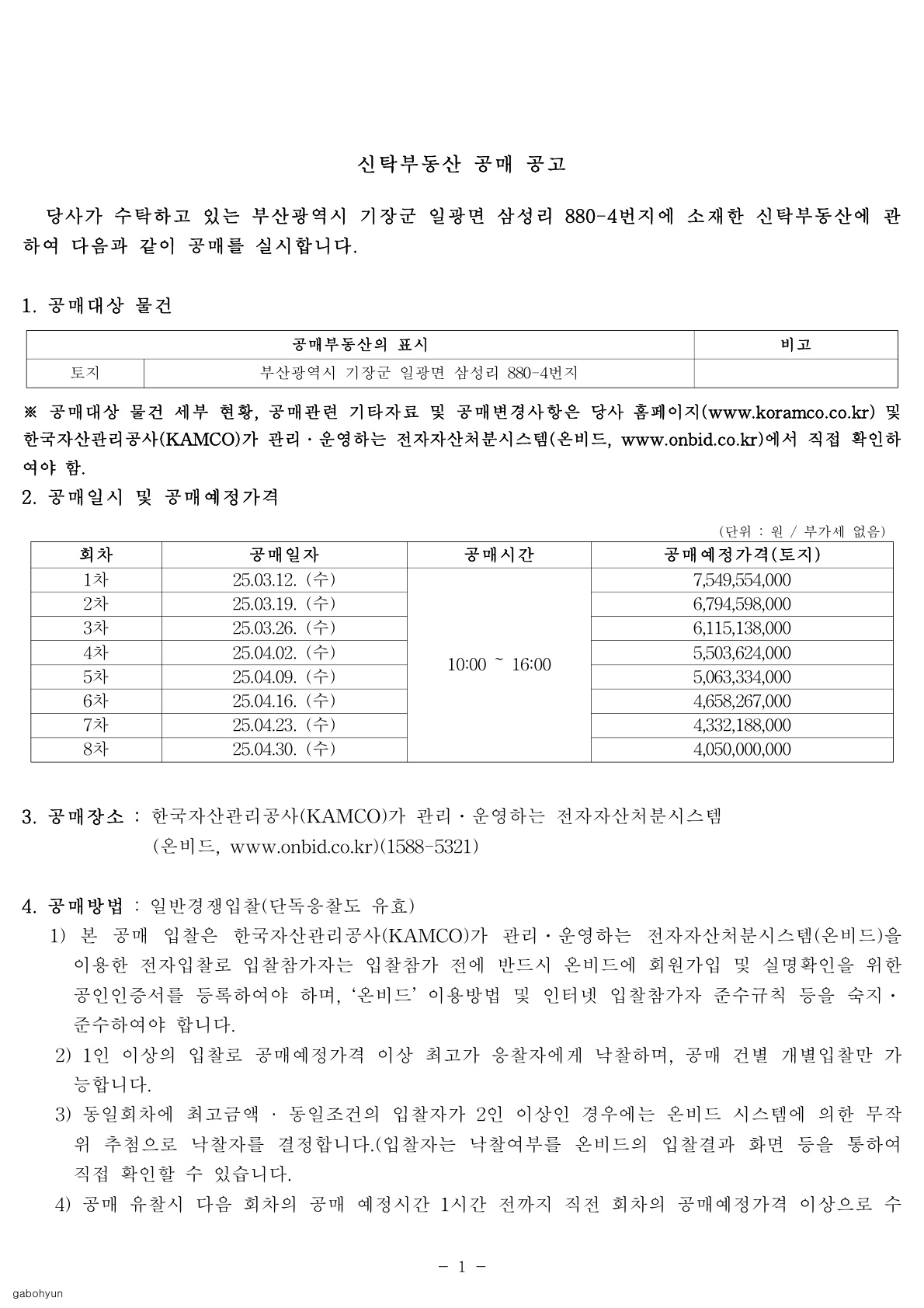 진행중 부산광역시 기장군 일광면 삼성리 880-4번지 토지 매각
