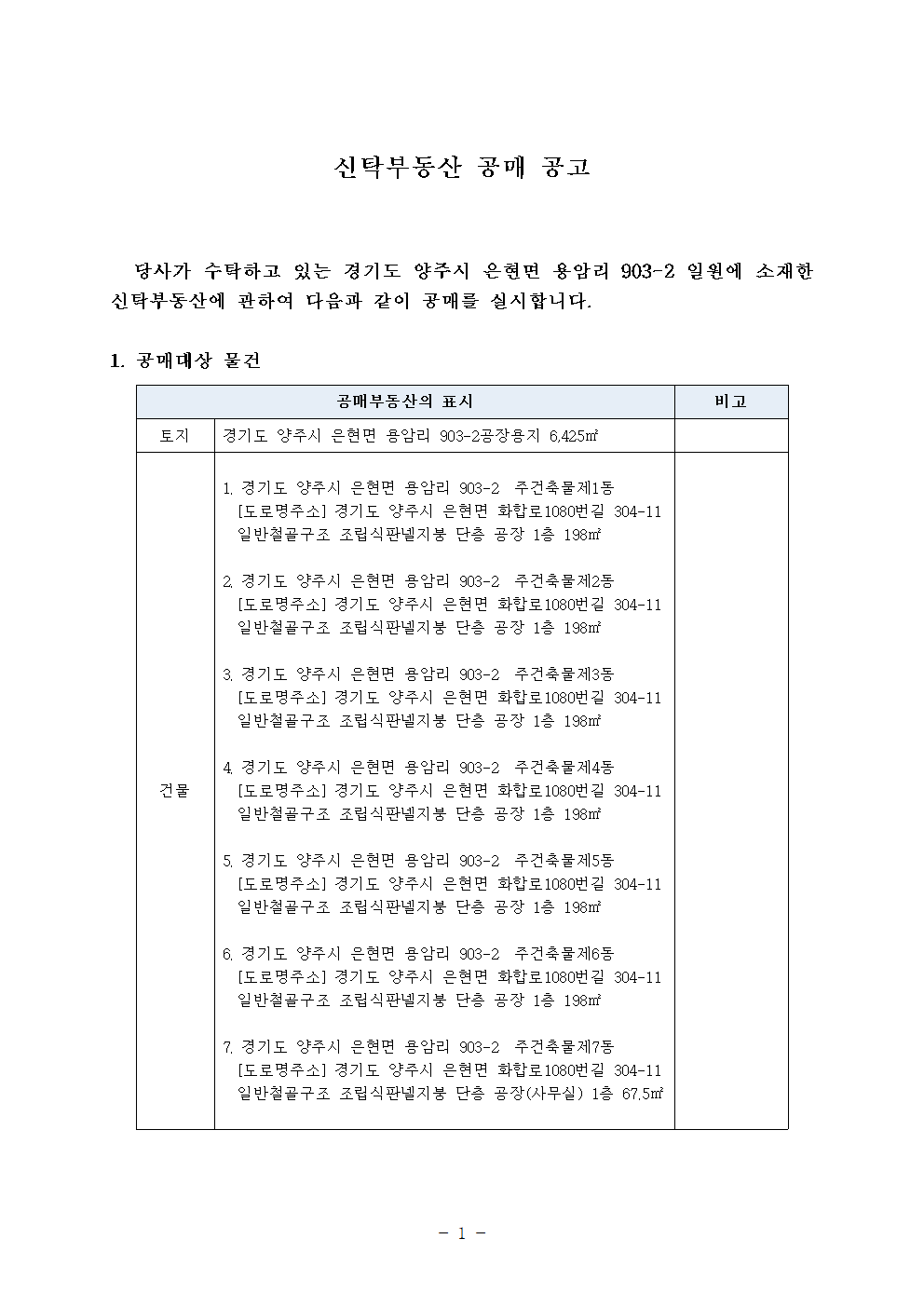 진행중 경기도 양주시 은현면 용암리 903-2 토지 및 건물 신탁부동산 공매