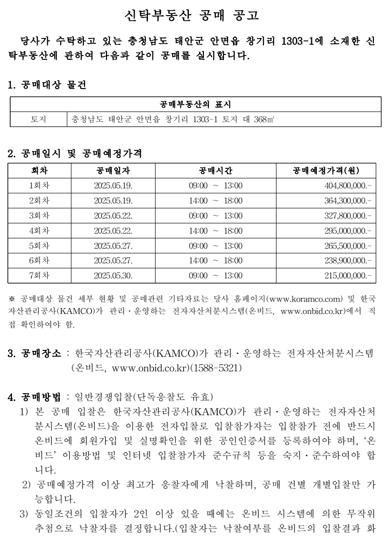 진행중 충청남도 태안군 안면읍 창기리 1303-1 토지 공매