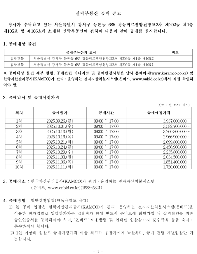 서울특별시 강서구 등촌동 685 경동미르웰양천향교2차 제202동 제1층 제105호 및 제106호 공매