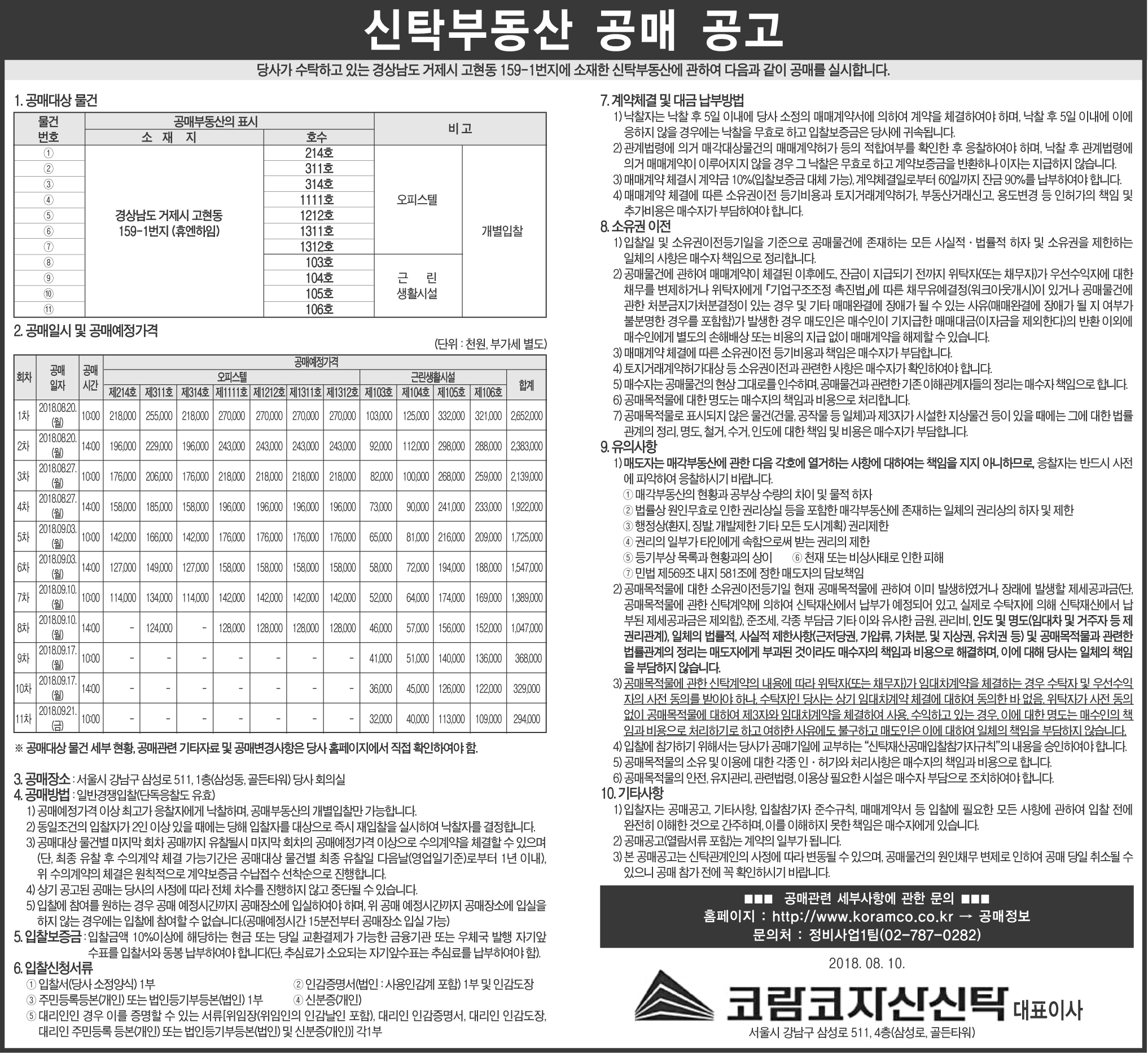 진행중 경상남도 거제시 고현동 159-1번지 휴엔하임 오피스텔 공매
