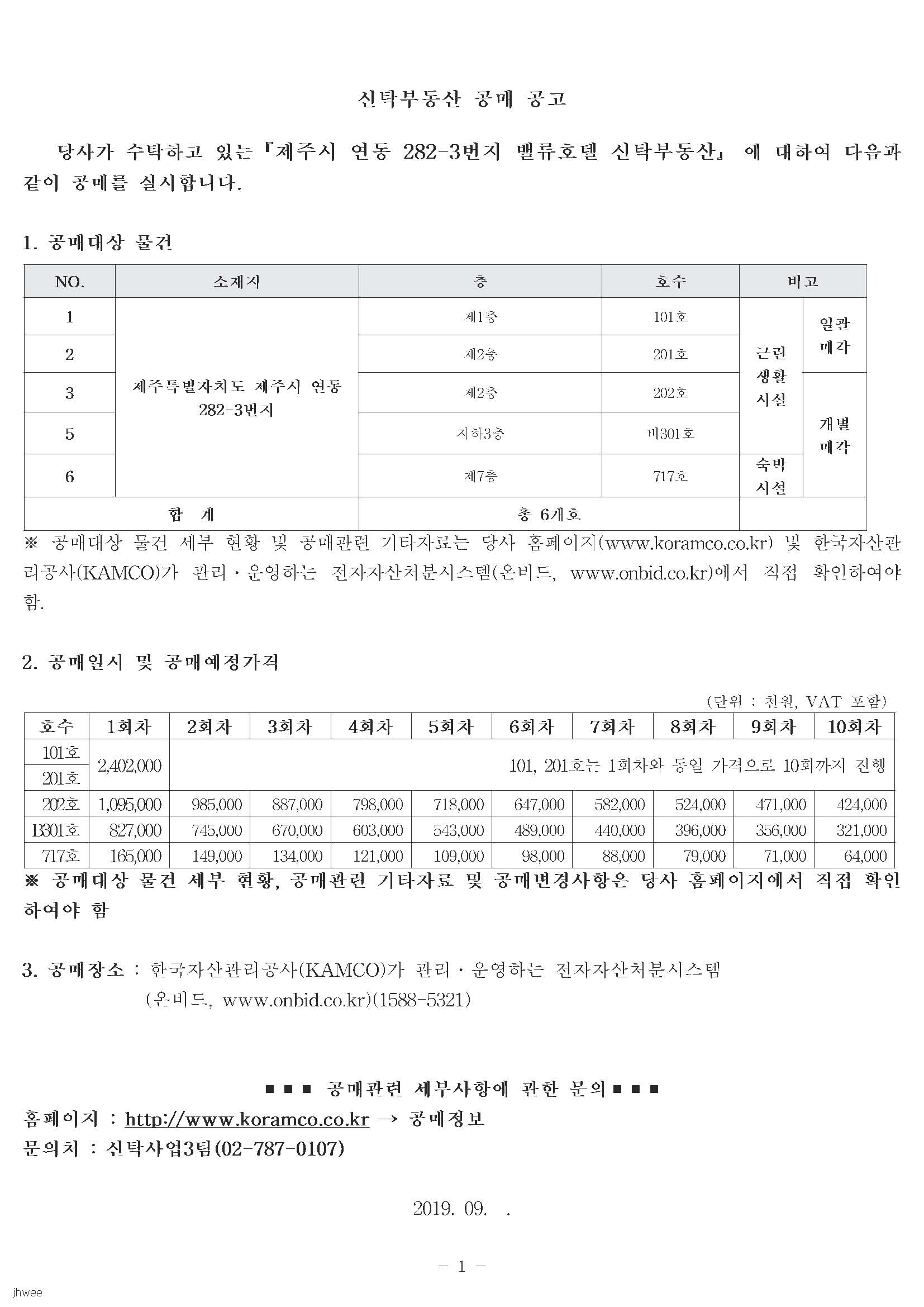 진행중 제주시 연동 282-3번지 신탁부동산 공매